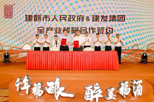 签约仪式上,在各界来宾的见证下,建发股份与福酒集团、福酒股份;建发美酒汇与福酒股份分别签署了战略合作协议,建瓯市人民政府也与建发集团签署了全产业战略合作协议,接下来各方将依托各自优势,从多方面展开深度合作,共同推动地方区域经济社会发展,实现互利共赢。