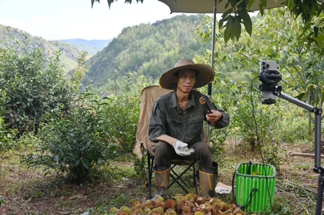 金秋九月,建瓯市龙村乡梨坪村迎来一年中的锥栗丰收季。15日上午,该村返乡青年张扬腾坐在锥栗林间,面对手机镜头用带着乡音的普通话热情地向网友介绍:“家人们,咱们的锥栗就生长在这海拔700多米以上的山上,这里昼夜温差大,煮熟的栗果粉糯香甜。”他一边用竹夹将栗果从栗苞中夹出展示给网友看,一边与网友互动,回应网友诸如“锥栗与板栗有什么不同”等问题。