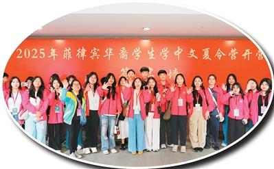 2025年菲律宾华裔学生学中文夏令营部分营员在开营式现场合影。朱 婷摄