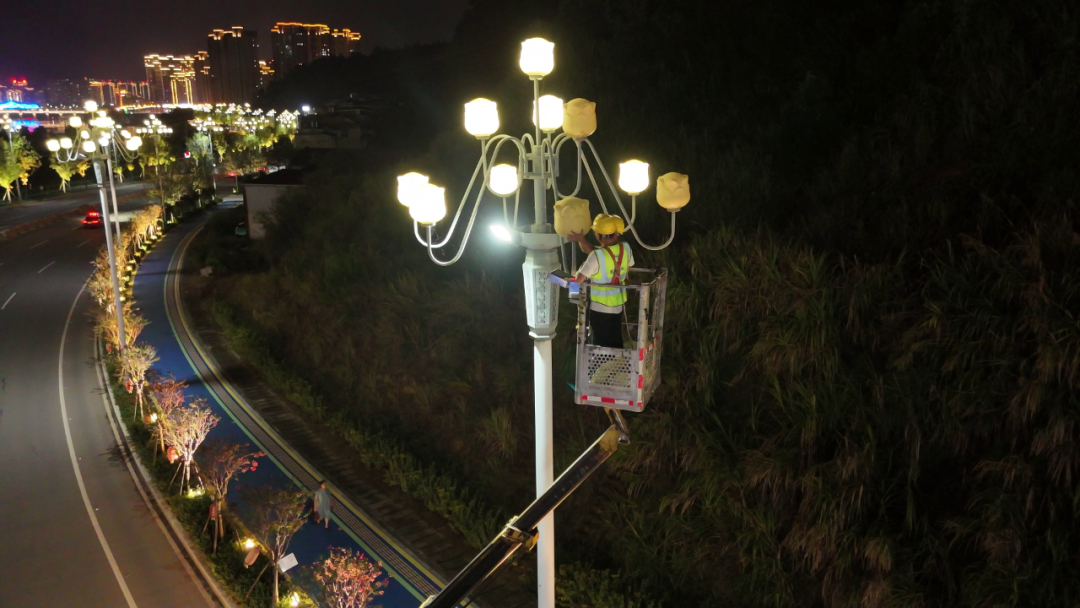夜幕降临,华灯初上,一盏盏路灯不仅点亮了城市的街道,更守护着每一位夜行人的平安。为了确保国庆、中秋“两节”期间城市照明系统稳定运行,我市园林市政中心持续对全市3万多盏路灯开展巡查和维护工作,努力为市民营造明亮、安全的夜间环境。
