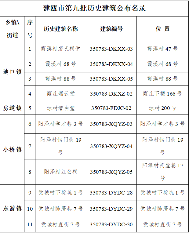 建瓯市人民政府关于公布第九批 历史建筑名录的通知 为进一步加强我市历史建筑的保护管理,更好地传承弘扬优秀历史文化,根据《福建省历史文化名城名镇名村和传统村落保护条例》有关规定,经研究,确定霞溪村裴氏祠堂等22处建筑为历史建筑,现予以公布。 各单位要落实相关规定要求,切实做好历史建筑的保护管理工作。 附件:建瓯市第九批历史建筑名录 建瓯市人民政府 2025年9月28日 |