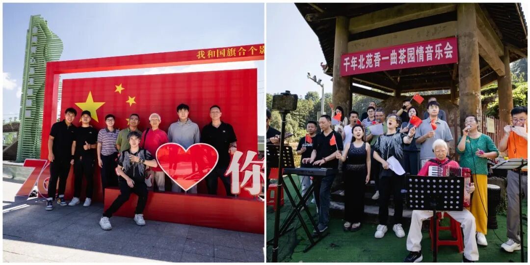 以茶为媒,以乐会友。10月10日,由东峰镇举办的“千年北苑香一曲茶园情”音乐会在北苑御茶园上演。 清晨的茶园在阳光的映衬下别有一番温婉雅韵,伴随着乐队合奏首秀《我和我的祖国》,拉开了此次音乐会的帷幕。此次活动还特别邀请到国家一级作曲、词作家、文艺评论家、福建省音乐家协会顾问、东峰镇乡贤魏德泮到场演唱。 活动现场,歌手们以小合唱、对唱、独唱的方式,带来《北苑贡茶》、《一起逛逛铁井栏》、《千年建州》等歌曲,充满激情的演唱,瞬间点燃现场气氛,著名音乐家魏德泮充满深情的诗朗诵《北苑贡茶冠天下》展现了千年建州北苑贡茶的文化魅力。 跳跃的音符回荡在这片千年御茶园上,歌手们通过音乐与茶结合的独特方式,让千年前的贡茶风华与新时代的艺术表达深情对话。音乐会后参演人员一行人还参观了闽台同根茶园、凤山茶神庙,感受北苑贡茶的厚重历史。 近年来,东峰镇按照市委做优“一片叶”的发展目标,把东峰最具竞争力的茶文化资源通过艺术表演、非遗展示等创新性发展和创造性转化的方式进行传承和发扬,积极引入乡贤力量为乡村振兴注入新的文化动力,让北苑贡茶在音乐的赋能下,焕发出更加迷人、更加蓬勃的生命力。(李赞军) |