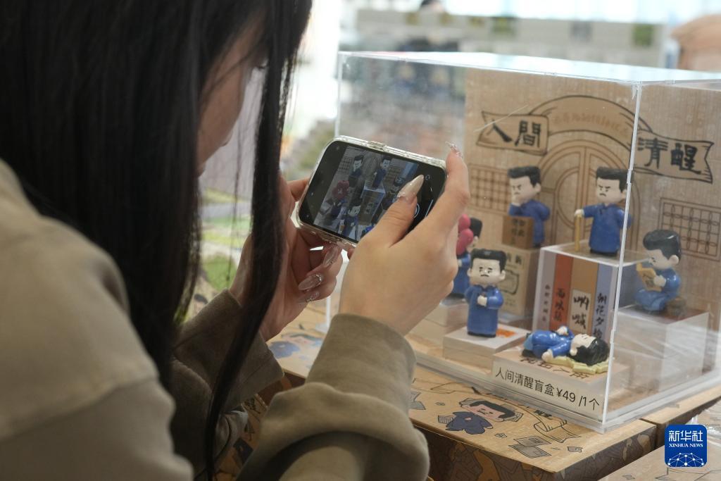 10月23日,游客在鲁迅故里拍摄文创产品。 近年来,位于浙江绍兴越城区的鲁迅故里围绕鲁迅及其文学世界,持续打造特色文化IP,有效延续了文化名人的当代活力。目前,鲁迅故里与8家设计团队达成合作,作为官方供应商共同开发以鲁迅及其文学作品为主题的文创纪念品与特色餐饮单品,并结合季节更迭设置主题打卡点,吸引大量游客前来游览。 新华社记者 翁忻旸 摄