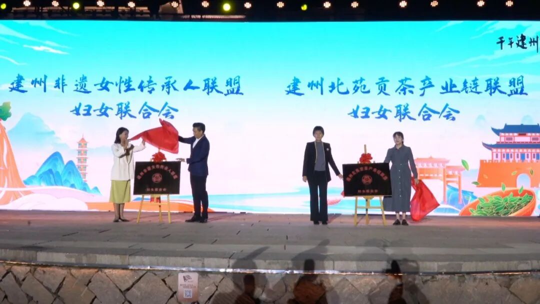 现场还有建州非遗女性传承人联盟妇联与建州北苑贡茶产业链联盟妇联揭牌仪式,进一步凸显妇女在非遗传承中的力量。