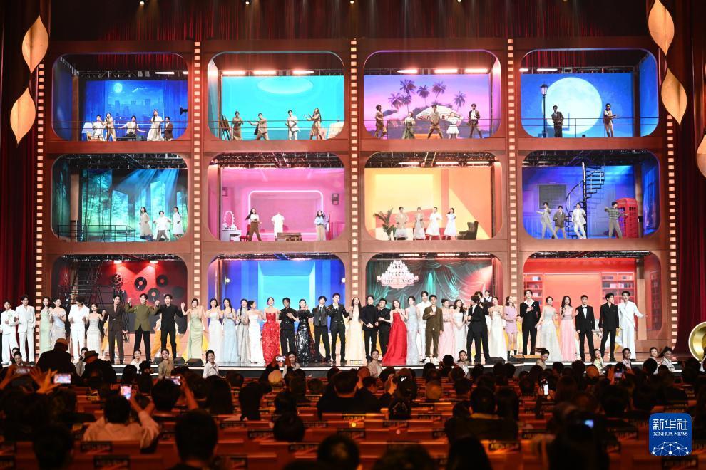 11月15日拍摄的颁奖典礼现场。打破中国影史票房纪录的《哪吒之魔童闹海》斩获最佳美术片奖。 11月15日晚,第38届中国电影金鸡奖颁奖典礼暨2025中国金鸡百花电影节闭幕式在厦门海峡大剧院举行,《好东西》获得最佳故事片奖,易烊千玺凭借在影片《小小的我》中饰演刘春和获得最佳男主角奖,宋佳凭借在影片《好东西》中饰演王铁梅获得最佳女主角奖。 新华社记者 周义 摄