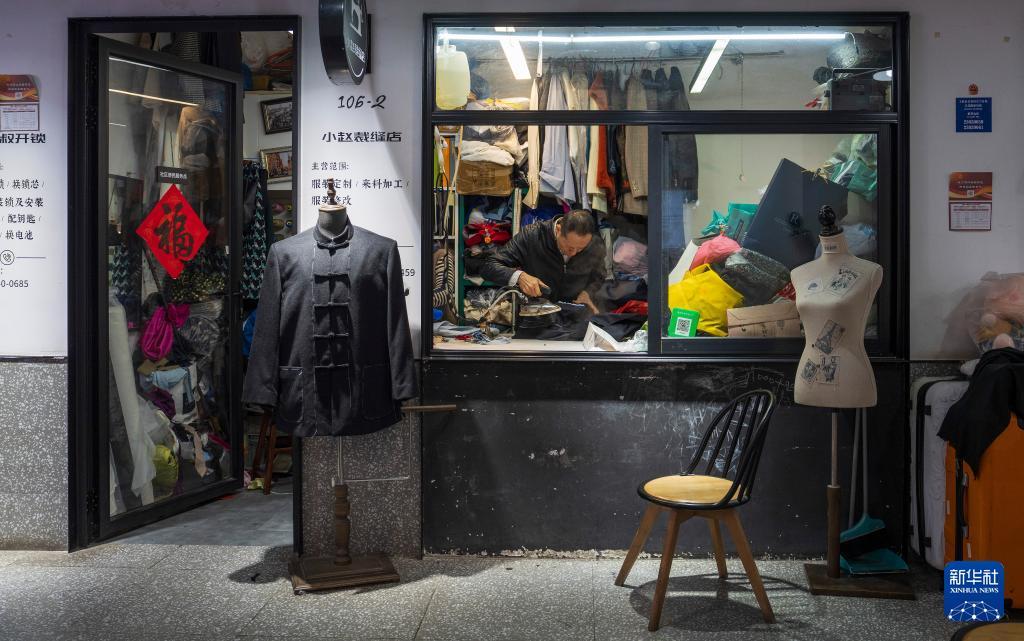 11月12日,上海市长宁区愚园路的小赵裁缝店店主在熨烫衣服。 位于上海市长宁区的愚园艺术生活街区近年来坚持"生活艺术化,艺术生活化"的城市更新理念,引入独立书店、咖啡馆、艺术工作室等,现有约80家各具特色的商铺,形成了"艺术愚园"和"跨界生活美学体验街区"的定位,成为上海文艺青年和游客喜爱的打卡地。 新华社记者 才扬 摄
