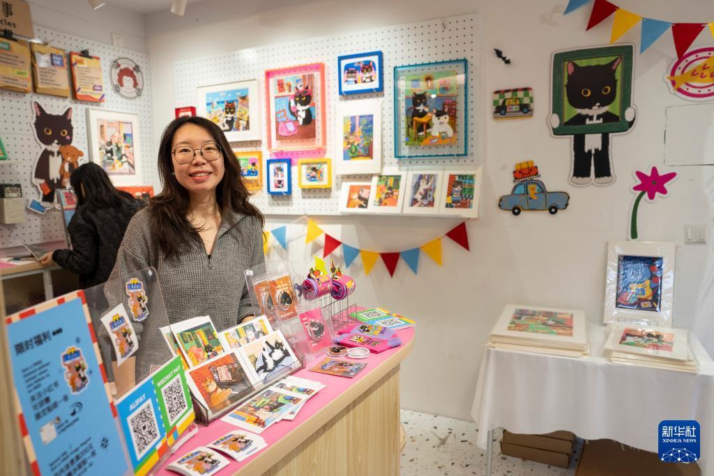 11月12日,在上海市长宁区愚园路的故事商店,工作人员展示文创产品。愚园路故事商店是由街道支持打造的10平方米特色空间,街道免费提供沿街铺面,将其打造成居民情感交流的"解忧杂货铺"。 位于上海市长宁区的愚园艺术生活街区近年来坚持"生活艺术化,艺术生活化"的城市更新理念,引入独立书店、咖啡馆、艺术工作室等,现有约80家各具特色的商铺,形成了"艺术愚园"和"跨界生活美学体验街区"的定位,成为上海文艺青年和游客喜爱的打卡地。 新华社记者 才扬 摄