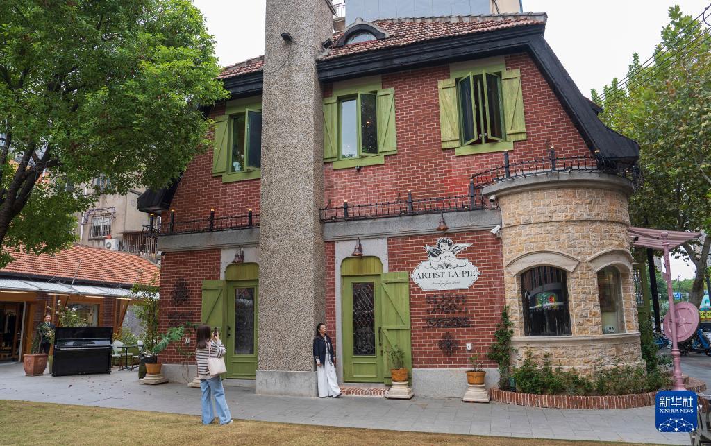 11月12日,游客在上海市长宁区愚园路打卡拍照。 位于上海市长宁区的愚园艺术生活街区近年来坚持"生活艺术化,艺术生活化"的城市更新理念,引入独立书店、咖啡馆、艺术工作室等,现有约80家各具特色的商铺,形成了"艺术愚园"和"跨界生活美学体验街区"的定位,成为上海文艺青年和游客喜爱的打卡地。 新华社记者 才扬 摄