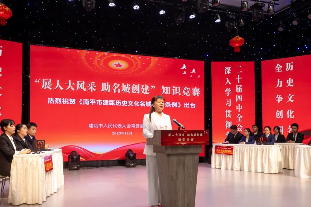 为深入学习贯彻党的二十届四中全会精神,热烈祝贺《南平市建瓯历史文化名城保护条例》正式出台。11月13日,建瓯市人大常委会“展人大风采 助名城创建”知识竞赛决赛活动在市融媒体中心举行。南平市人大常委会副主任潘敏芳,教科文卫工委主任江朝海,建瓯市领导池清使、黎晓芳、魏世华、丁炳锋、叶莉、魏永武等出席活动。池清使在活动现场致辞。