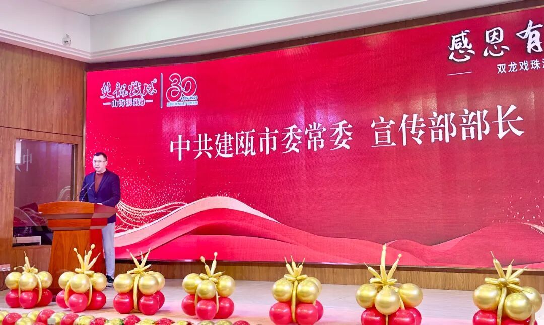 市委常委、宣传部部长叶华在致辞中代表市委市政府向双龙戏珠酒业有限公司致以祝贺。他指出,三十年来,双龙戏珠酒业有限公司坚持匠心酿酒、传承工艺文化、反哺地方发展,不仅成为建瓯“味觉名片”,也在带动就业、产业链协同、公益助力等方面作出了积极贡献。希望企业要坚守品质初心,做 “匠心传承” 的引领者,让“双龙戏珠”的品质口碑代代相传,成为经得起时间检验的“百年品牌”;要拥抱创新变革,做“产业升级”的先行者,为我市传统产业升级提供更多可复制经验;要深化产城融合,做“协同发展”的推动者,为我市打造“文旅+产业”融合发展新格局贡献力量。