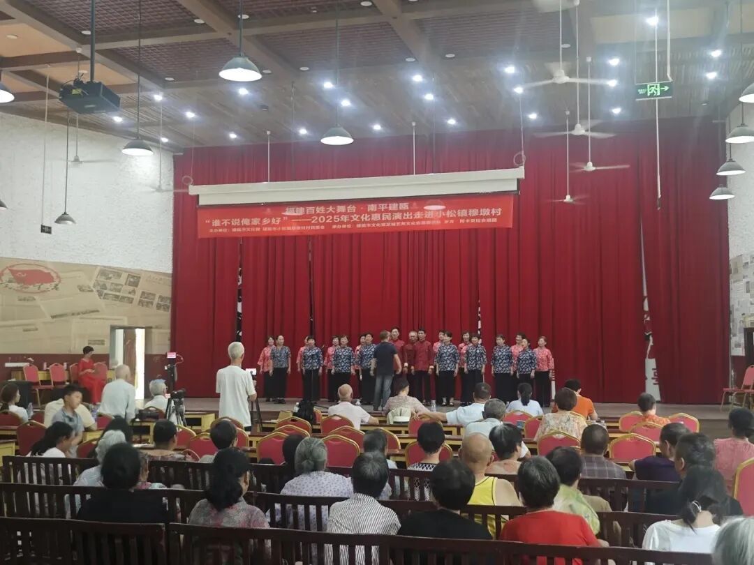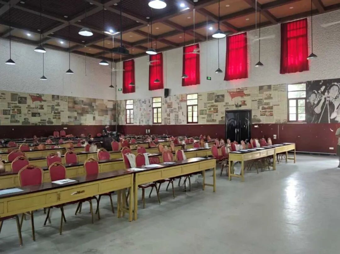 穆墩村知青大礼堂建于1984年,主要为穆墩村生产大队提供集会、学习、文娱活动和重要仪式(如欢迎会、表彰会、欢送会)的场所。它见证了那个特殊年代成千上万知识青年的青春岁月、理想追求、艰苦奋斗历程以及他们与当地农民、农工结下的深厚情谊,承载着一段不可磨灭的集体记忆和国家历史。 该建筑为典型的时代功能性建筑,整体风格质朴实用,结构上采用砖木混合形式,主体梁架选用本地优质杉木,墙体厚度达42厘米。其设计既吸收了苏式建筑注重实用的特点,又融入了闽北传统民居的地域特色,反映出特定历史时期的建设理念与审美取向。 为加强历史建筑保护与活化利用,穆墩村村委会于2018年启动大礼堂修缮工程。修缮后,主厅为方形空间,层高8米,建筑面积约600平方米,可同时容纳500人参与活动。配套设置梯形舞台一座,并配备三间演员后台及两间多功能侧室,进一步拓展了使用功能。2022年,为进一步提升空间品质,工程团队对原顶面进行改造,采用轻钢龙骨石膏板吊顶系统,有效解决了管线裸露、饰面老化等问题。新吊顶在延续原有历史风貌的基础上,通过分层设计整合照明系统并优化声学效果,使这座文化地标在保持庄重典雅风貌的同时,更好地满足现代复合型场馆的使用需求。