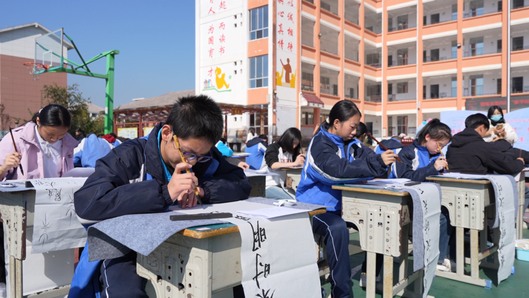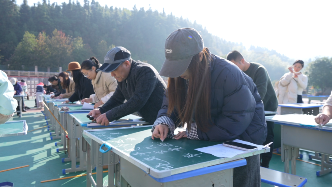 此次比赛共设小学组、初高中组、教师组三场,比赛项目学生为硬笔字、毛笔字;教师为粉笔字、毛笔字。现场师生凝神静气,挥毫泼墨,在规定的比赛时间内全神贯注地完成自己的作品,展现出扎实的书法功底。 汉字书写不仅是中国文化启蒙的起点,更是素质教育的基础。练习书法能够培养专注力,提升审美能力,在潜移默化中涵养心性。对青少年而言,一笔一画的书写过程,既是技能的磨炼,更是品格的塑造,从“字端”到“品正”,在横平竖直间领悟做人道理。