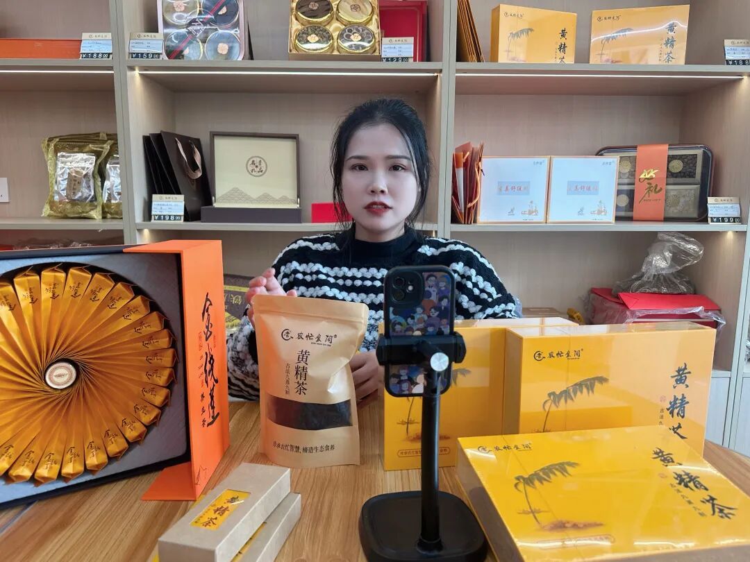 陈建珍正在晾晒草药 资料图 “有了专家的帮助,我们少走了很多弯路,药材成活率稳步提升。”她这才明白,做农业光有热情不够,还得有技术支撑。 艺术赋能 让“土货”更好卖 2018年是陈建珍创业路上的“转折年”。这一年,她在迪口镇开了第一家实体店,成立家庭农场,加入建瓯市益农信息社。在新型职业农民培训和创业项目课程上,“品牌建设+线上线下结合”的理念让她茅塞顿开。 “我突然意识到,家乡的农产品不是不好,而是缺了‘包装’和‘故事’。”陈建珍说,以前村民卖农产品都是用塑料袋一装,再好的东西也显得廉价。作为艺术设计专业毕业生,她决定发挥专业优势,给农产品“穿新衣、讲故事”。