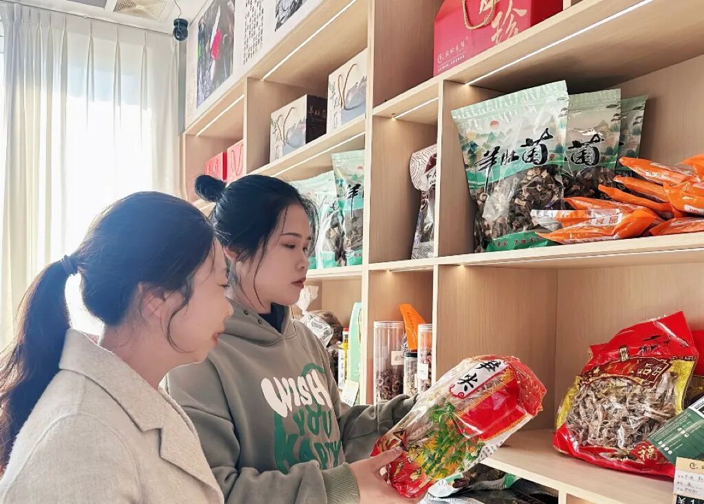 陈建珍在直播间介绍自己公司的乡土产品 她设计了“农忙食间”品牌LOGO,左侧图形融合斗笠、太阳、“食”字等元素,再加上一片叶子增添自然气息。又为笋干、红菇、黄精等产品设计了牛皮纸包装,印上村里的稻田、竹林、老房子,还附上手写文字讲述种植故事和古法工艺。“比如黄精包装上,我会写‘九蒸九晒,传承祖辈手艺,每一颗都饱含乡土的温度’。” 没想到换了包装的农产品一下子就“火”了,销量翻了倍。“有个上海客户说,看到包装上的乡村风景,就想起了自己的老家,觉得特别亲切。”这让她更坚信,艺术能给农产品赋予更多温度和价值。