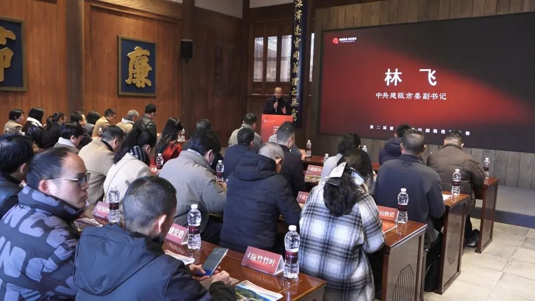 市委副书记林飞在致辞中表示,建瓯拥有3000多年文明史和1800多年建县史,山水古城格局与深厚人文底蕴为影视创作提供了丰富的素材和广阔的灵感空间。首届“建州杯”微短剧大赛取得了丰硕的成果,希望本届大赛的各个团队能够聚焦“练氏夫人”保城救民的仁爱精神,围绕我市茶、竹、酒、古城、电商等主题,凝练叙事、鲜活演绎、用心制作,致敬建瓯厚重历史,弘扬闽派文化,用镜头捕捉更多美好、讲述更动人的故事,让更多人通过影像了解建瓯、走进建瓯。
