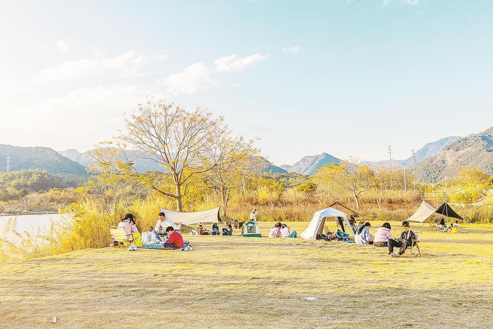近日,连江县贵安溪边,市民游客纷至沓来,搭起帐篷,体验自然野趣。在这里,蓝天为幕,草地为席,亲子互动、好友欢聚,静享冬日暖阳。 福建日报通讯员 丁天霖 摄 |