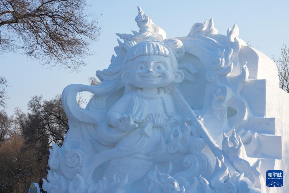 这是第38届太阳岛国际雪雕艺术博览会园区内的大型雪雕景观(12月26日摄)。 12月27日,第38届太阳岛国际雪雕艺术博览会试开园。本届雪博会以“冰天雪地 诗情画意”为主题,规划面积达150万平方米,总用雪量12万立方米。从气势恢宏的大型雪雕群到精美逼真的创意雪雕作品,雪博会将为人们呈现一场冰城雪境的艺术盛宴。 新华社记者 王松 摄
