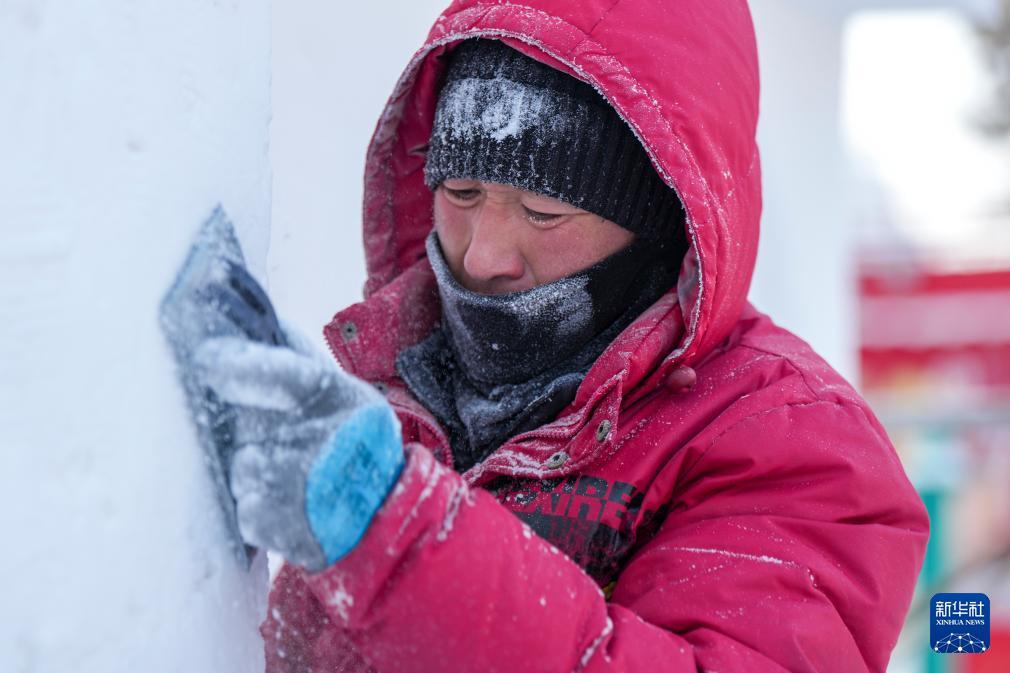 在第38届太阳岛国际雪雕艺术博览会园区,雪雕师对雪雕景观进行创作(12月26日摄)。 12月27日,第38届太阳岛国际雪雕艺术博览会试开园。本届雪博会以“冰天雪地 诗情画意”为主题,规划面积达150万平方米,总用雪量12万立方米。从气势恢宏的大型雪雕群到精美逼真的创意雪雕作品,雪博会将为人们呈现一场冰城雪境的艺术盛宴。 新华社记者 王松 摄