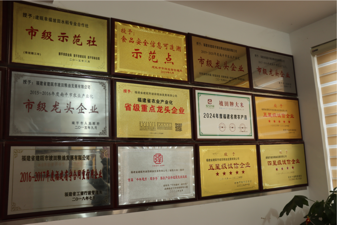 2000年,林昌盛毅然带着多年积累的资金、资源和行业经验回到迪口镇,创办建瓯市昌盛粮食加工厂。创业初期,他走遍全镇每个村,考察土壤条件、水源环境,与农户深入沟通,了解种植痛点。为了保证原料品质,2010年他注册成立坡田粮发展有限公司,并牵头成立粮油种植专业合作社,采取“公司+合作社+农户”的模式,与200余户村民签订保底收购协议,提供优质稻种,并邀请农业技术专家上门指导,推广绿色标准化种植技术,解决农户“种什么、怎么种、卖给谁”的后顾之忧。