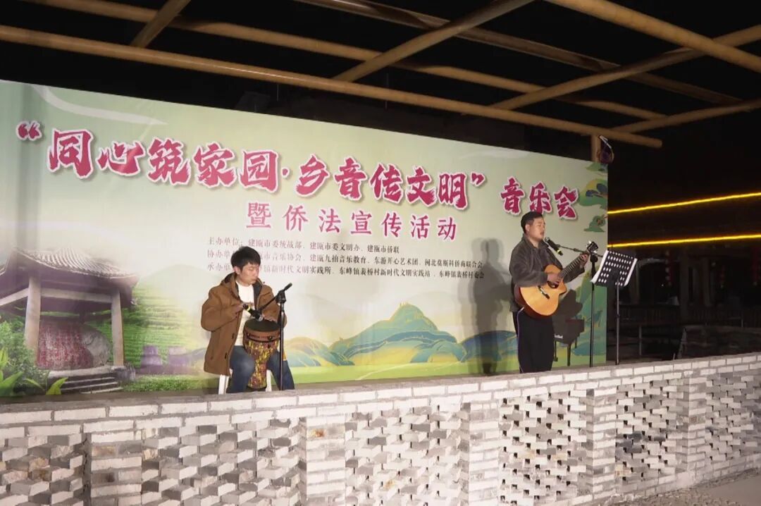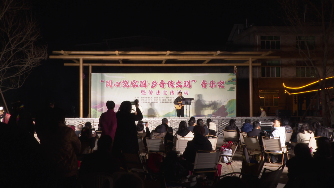 乡音袅袅传文明,同心聚力促振兴。1 月 15 日,“同心筑家园・乡音传文明”音乐会暨侨法宣传活动在东峰镇裴桥村主题公园举办。 活动通过村民喜闻乐见的文艺形式,传播文明乡风,丰富裴桥村群众的精神文化生活,增强村民的凝聚力与归属感,助力文明村镇创建。市委常委、统战部部长叶瑱出席活动。