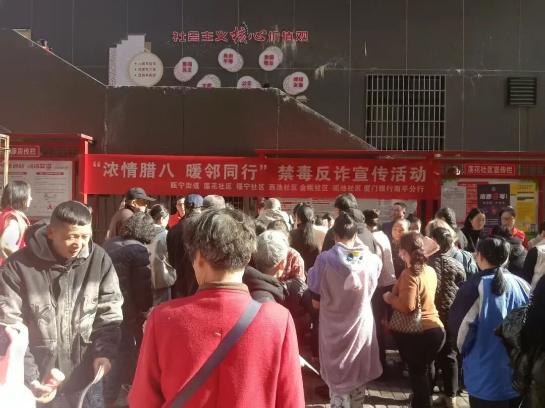 腊八节当日,瓯宁街道办事处组织辖区各社区举办“浓情腊八 暖邻同行”禁毒反诈宣传活动。