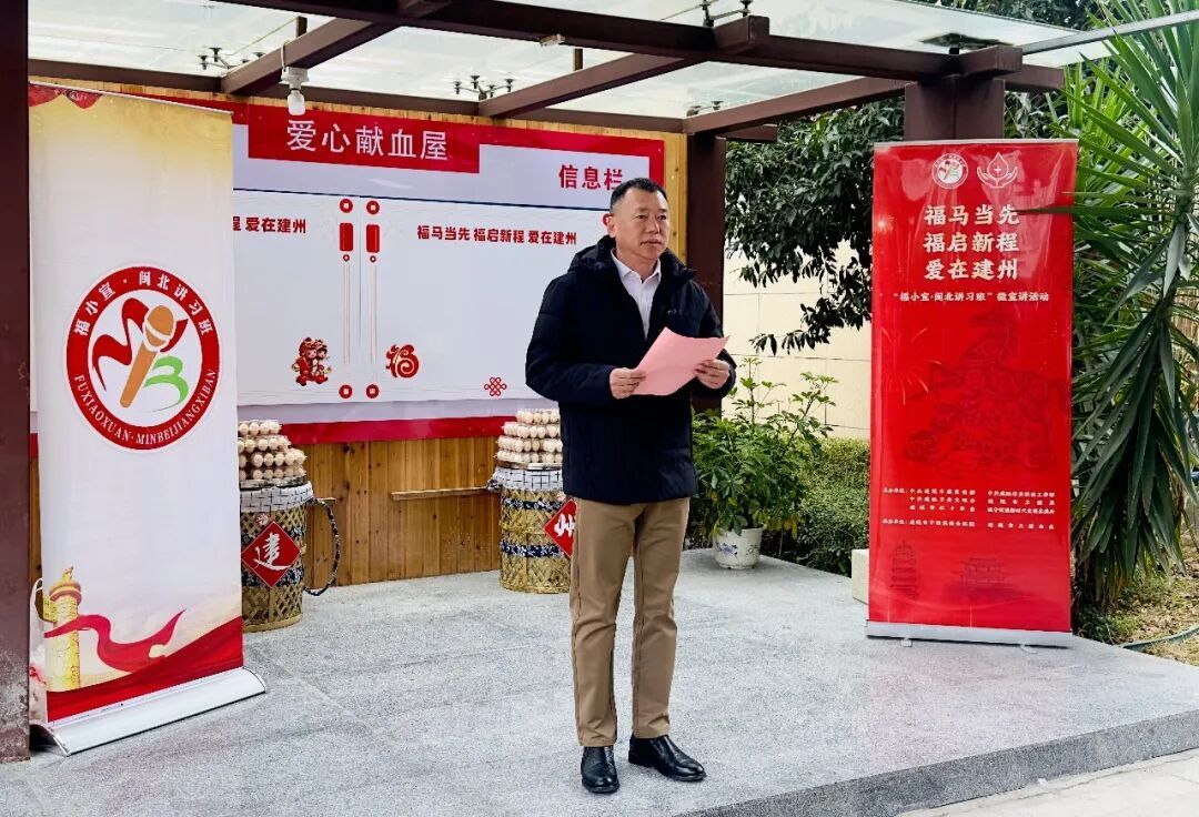 1月24日,“福马当先 福启新程 爱在建州”主题系列活动在中西医结合医院举行,同步开展“福小宣·闽北讲习班”微宣讲与2026年“热血送暖 为生命接力”无偿献血启动仪式。为深入学习宣传贯彻党的二十届四中全会精神,市委宣传部积极创新方式方法,结合地方特色打造“叮叮糖”理论挑子志愿服务微宣讲品牌,推动党的创新理论带着温度与乡土气息“飞入寻常百姓家”。市委常委、宣传部部长叶华出席活动。
