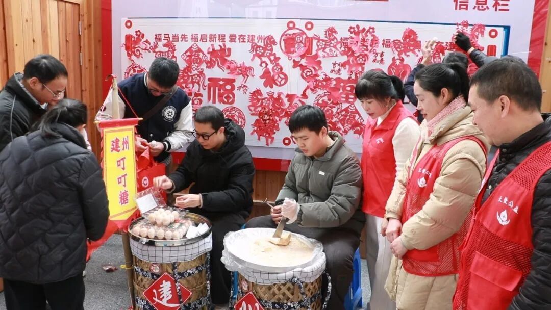 与此同时,一系列贴心暖心的志愿服务项目也同步展开。在“叮叮糖”理论挑子前,市民精心剪制福纸贴上祝福墙,为病患与长者传递诚挚祝愿;