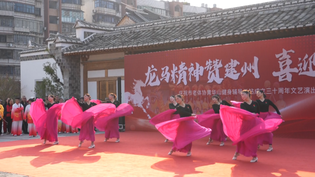 近日,为庆祝市老体协黄华山健身辅导二站成立三十周年,一场以“龙马精神赞建州 喜迎新年”为主题的文艺演出在芝山公园精彩上演,吸引了众多市民、老年朋友齐聚一堂,共庆盛典。