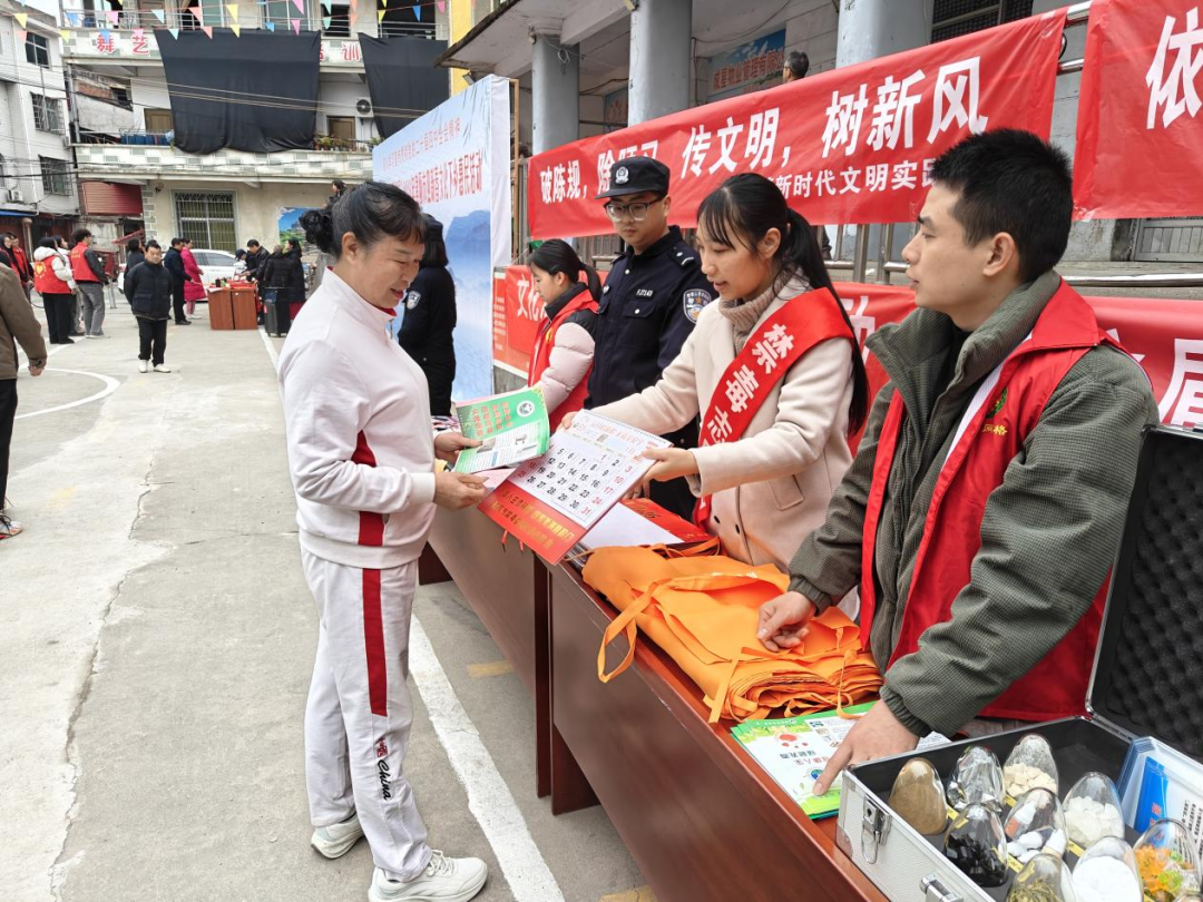 文化惠民不停步,普法宣传护平安。文艺汇演期间,镇综治办、派出所等部门在广场设立宣传展台,开展反诈、禁毒、道路交通安全集中宣传。工作人员通过发放手册、答疑解惑、讲解案例等方式,普及电信网络诈骗套路,提醒群众守好钱袋子;细致讲解毒品危害及识别技巧,倡导全民禁毒;耐心宣传交规,重点强调春节前骑乘电动车戴头盔、不酒驾醉驾、不超员超载等注意事项,筑牢安全防线。