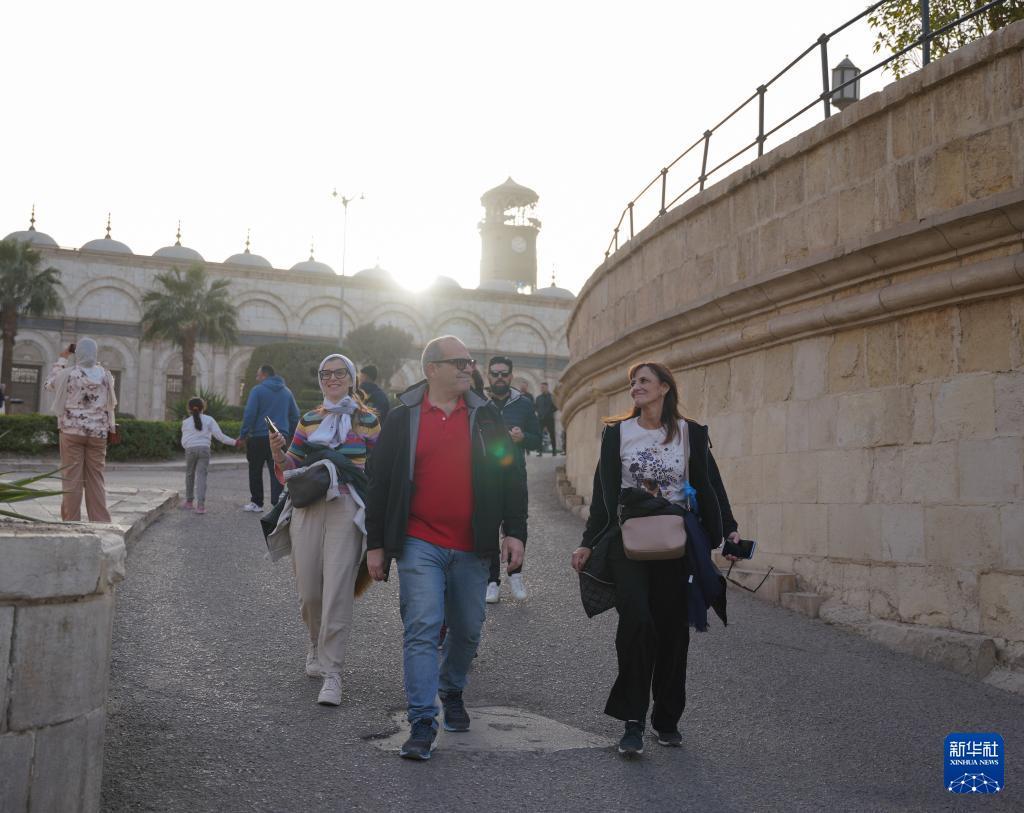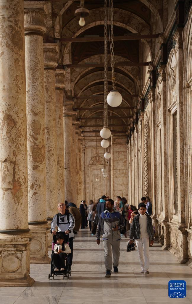 1月30日,游客在埃及开罗萨拉丁城堡游览。 萨拉丁城堡位于开罗东郊,由古代埃及苏丹萨拉丁为抗击十字军于公元12世纪建造,是开罗最著名古迹之一。 新华社记者 张浩波 摄