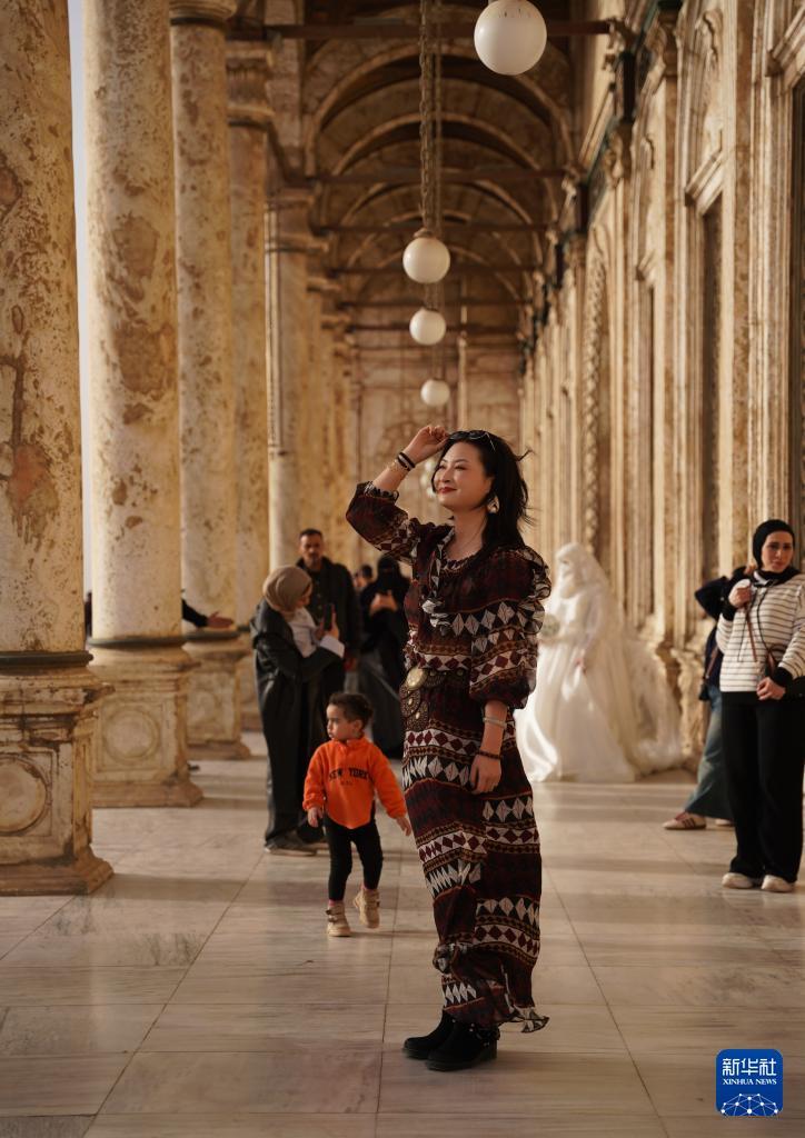 1月30日,游客在埃及开罗萨拉丁城堡留影。 萨拉丁城堡位于开罗东郊,由古代埃及苏丹萨拉丁为抗击十字军于公元12世纪建造,是开罗最著名古迹之一。 新华社记者 张浩波 摄