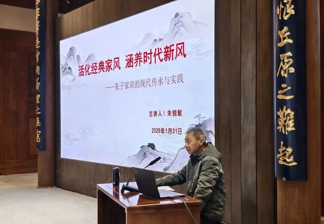 活动伊始,朱熹第28代嫡孙、建州朱子文化建设促进会会长朱锐敏为亲子诵读家庭作《朱子家训》专题授课。他以“活化经典家风 涵养时代新风”为主题,结合古今鲜活案例阐释国学经典的当代价值,赢得全场掌声。
