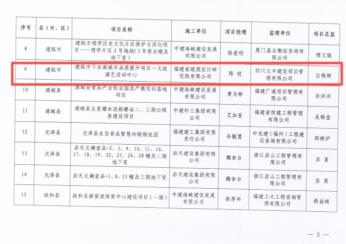 近日,2025年度南平市建筑施工安全生产标准化优良项目正式公布,建瓯市下水南城市品质提升项目——文旅演艺活动中心荣膺榜单。