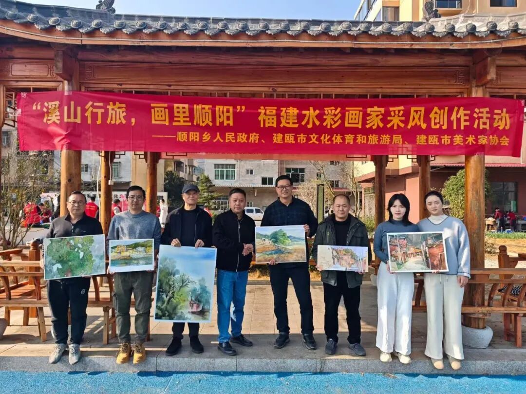 近日,由顺阳乡党委、顺阳乡人民政府以及建瓯市文化体育和旅游局联合主办,建瓯市美术家协会协办的“溪山行旅·画里顺阳”福建水彩画家采风创作活动圆满落幕。自2月2日以来,十余位知名画家走进顺阳乡各村,通过风景写生的艺术形式,围绕当地自然风光、文化传统及乡村振兴成果创作绘画作品,为顺阳乡乡村文化振兴注入活力。