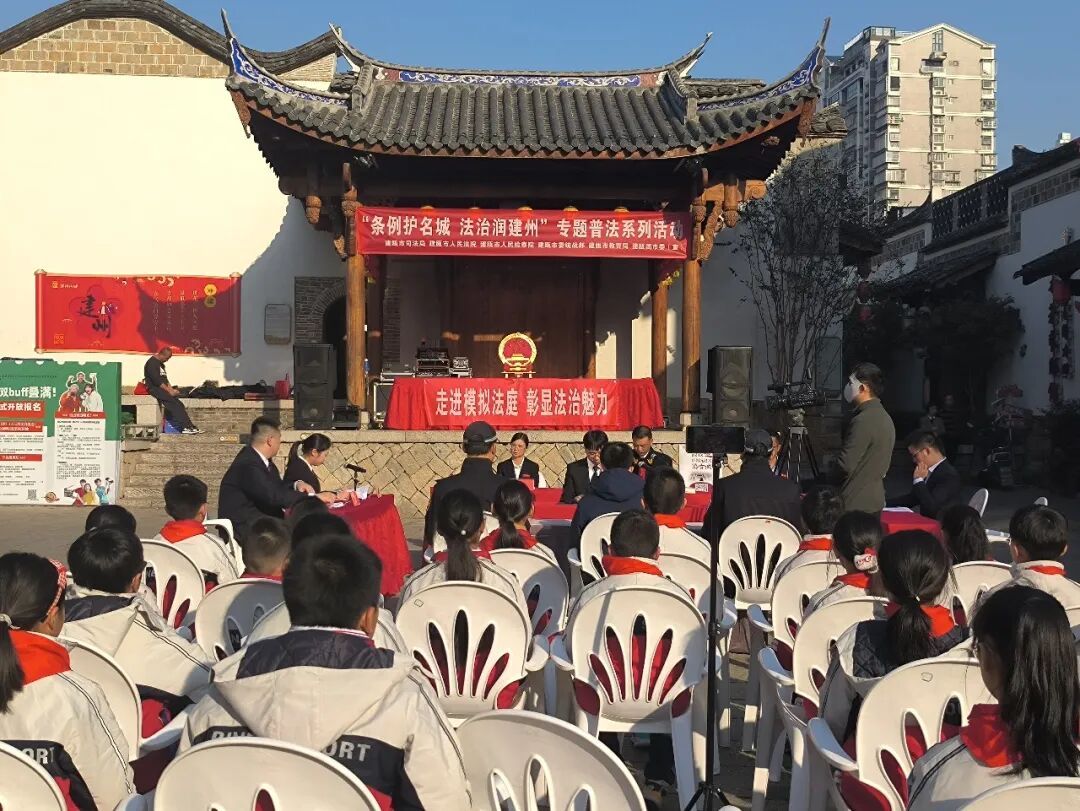 2025年以来,建瓯市司法局积极履行统筹协调职责,将《条例》的宣传贯彻纳入全市普法工作重点,推动形成部门联动、齐抓共管的法治宣传合力。在铁井栏-紫芝街、东岳庙等历史文化街区、重点文保单位,集中开展普法宣传活动,让法治服务深入古城肌理;联动全市各乡镇(街道),利用“法治赶圩”等形式,开展面对面、零距离普法宣传,将保护理念传递到千家万户。线上,牵头制作“法绘建州”系列短视频,生动解读《条例》内容;创新推出《条例》宣传电话彩铃、结合重要时间节点发送《条例》普法短信,通过“报、台、网、微、端、屏”多渠道发布普法信息,构建起立体化宣传网络。截至目前,该局围绕《条例》组织开展专题讲座、模拟法庭、非遗法治版画展、法治文艺演出等各类普法活动56场次。