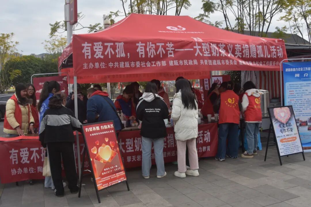 近日,由中共建瓯市委社会工作部、市民政局、共青团建瓯市委、市助力社会工作服务中心主办的“有爱不孤,有你不苦”的大型奶茶义卖捐赠活动在江滨国际广场举行。来自主办单位、通济街道陶朱社区、爱心企业MI糖先森、返乡大学生志愿队、擎天岩道厂茶叶、建州送水网、给力职业培训学校等协办单位的人员,以及特殊教育工作者和台胞志愿者、路过的爱心市民朋友参加了活动。