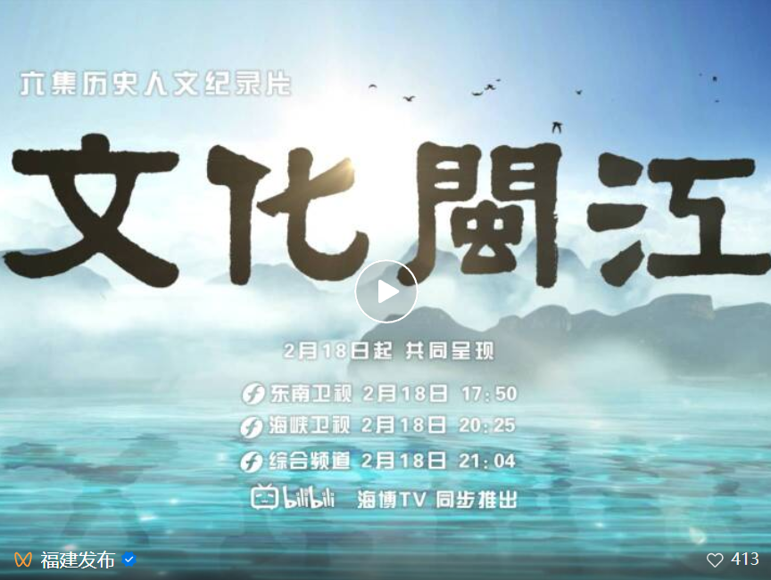 闽江,是福建的母亲河,其流域面积约占福建总面积的一半。在“多元一体”的中华文明形成发展过程中,以闽江流域为核心的闽文化,是璀璨的东南之星。 作为“福建文脉”工程第一季作品,由福建省委宣传部策划指导,省广播电视局支持,省广播影视集团历时近两年精心打磨的六集历史人文纪录片《文化闽江》将于马年春节期间与观众见面,海博TV同步推出。 福建山海相拥,文脉绵长,兼具内陆农耕与海洋开放气质,是近代启蒙、红色传承、改革开放的重要场域,更是习近平文化思想重要孕育地和实践地。“福建文脉”工程以影像系统梳理八闽文化,第一季六集纪录片《文化闽江》,以母亲河闽江为叙事主轴,贯通自然地理、历史变迁与当代风采,全景呈现闽江流域的文化根脉、人文价值与时代气象。