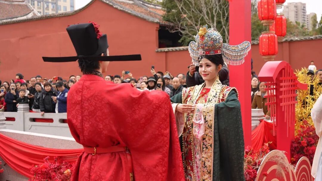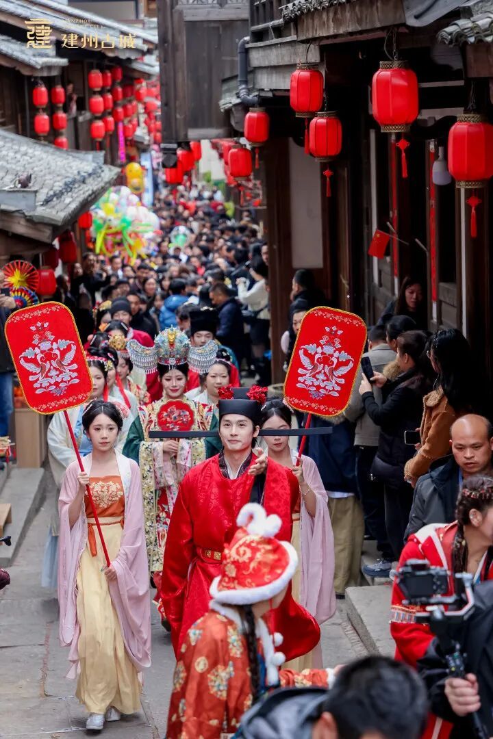 这正是今年建瓯新春系列活动中的重头戏——以宋代礼仪为蓝本的“朱子婚礼”巡游表演。活动不仅生动还原了朱熹大婚的盛况,更让宋韵文化以鲜活的方式走进寻常百姓家。