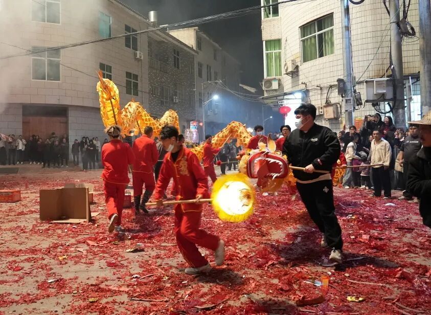 夜幕初垂,山边村街巷便被阵阵锣鼓唤醒,空气中洋溢着烟花爆竹的喜庆氛围。随着礼炮声响,舞龙灯、板凳龙两支队伍从不同方向汇聚村民活动中心,元宵民俗活动正式拉开帷幕。十余米长的祥龙在绣球引领下,时而蛟龙出海、翻腾跳跃,时而游龙摆尾、蜿蜒盘旋,一招一式尽显舞龙人的默契与力量,引得现场观众纷纷举机拍摄,定格精彩瞬间。