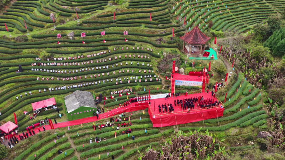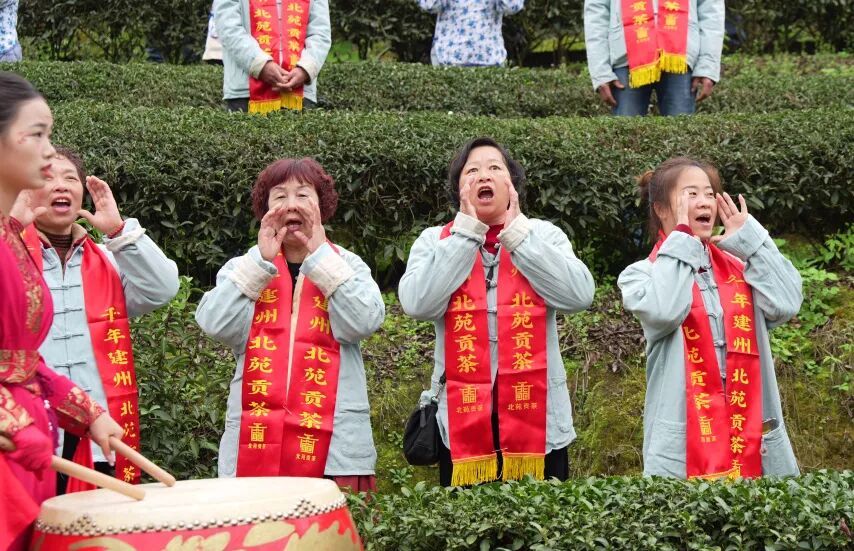 副市长张年雄现场诵读祭文,字里行间满含对北苑非遗传承的坚守、对茶产业提质增效的期盼,寄托着全体茶人守正创新、续写北苑荣光的美好愿景。 祭文礼毕,激昂鼓点再度奏响,全场茶人、嘉宾与游客齐声喊山,“灵芽发、甘泉涌、贡茶香!”的呐喊声此起彼伏、响彻山峦,与惊蛰春雷遥相呼应,既是对春日茶芽的深情呼唤,更是对丰收福祉的热切期盼,场面震撼人心、氛围感拉满。