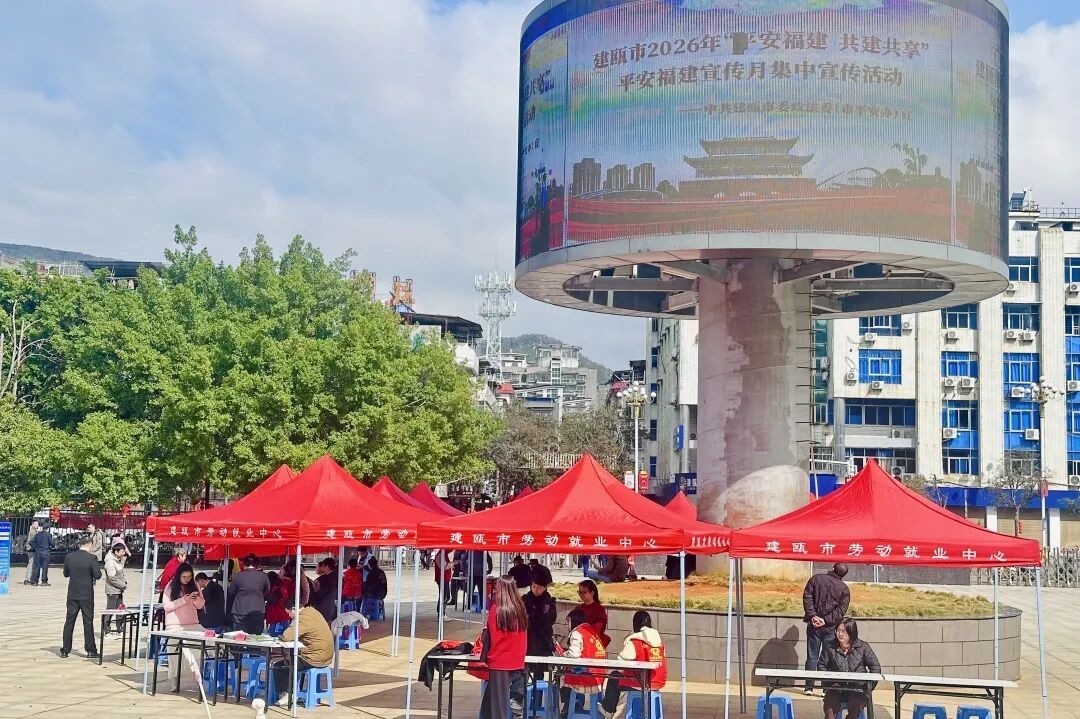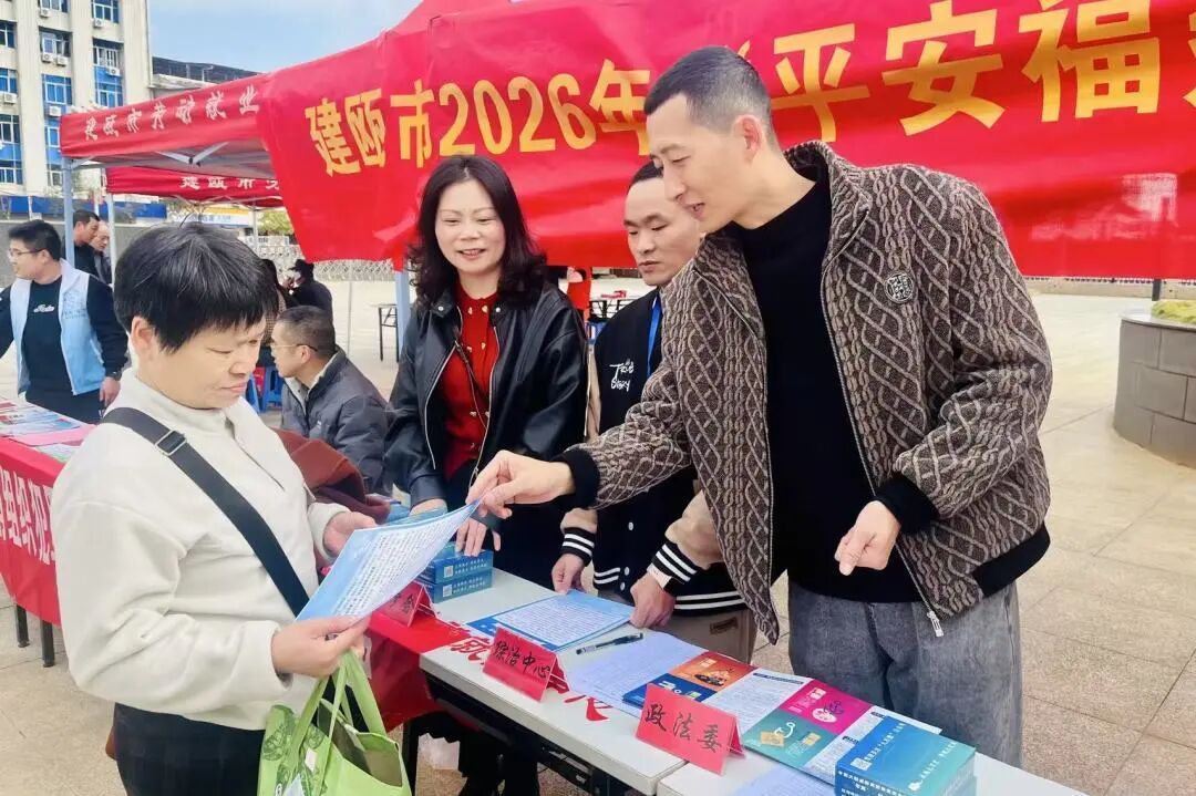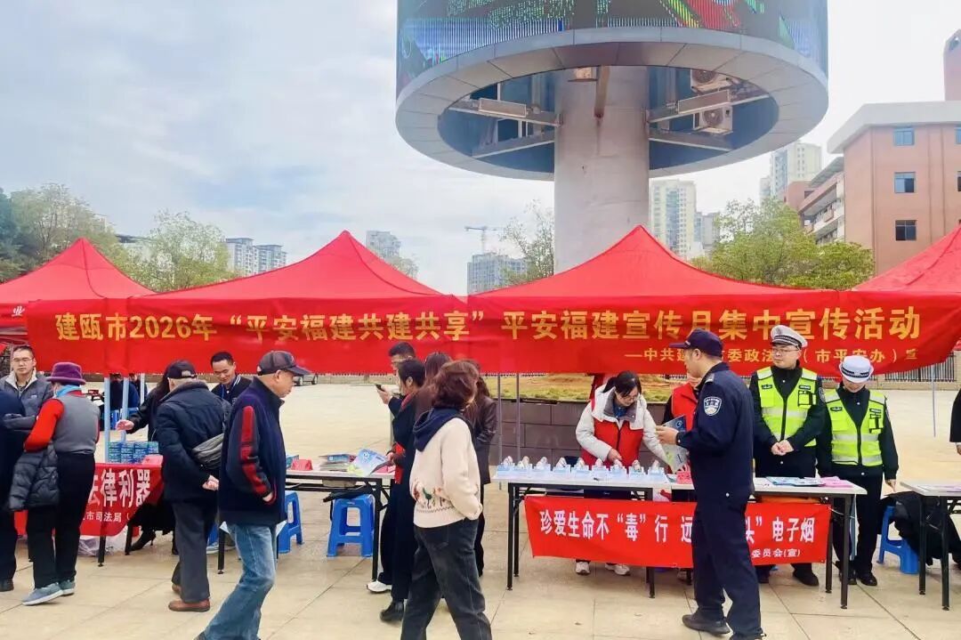 阳春三月,平安同行。3月5日,建瓯市委政法委(市平安办)组织法院、检察院、公安局、司法局、人社局等13家单位,开展“平安福建共建共享”主题集中宣传活动,拉开全市2026年平安福建宣传月序幕,将平安理念送到群众身边。