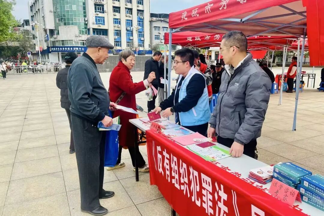 活动现场,各单位立足职能,摆放宣传展板、设立咨询服务专区、悬挂主题横幅,工作人员向群众发放防范诈骗、禁毒防毒、反邪教、扫黑除恶(反有组织犯罪法)、矛盾纠纷化解、平安“三率”等宣传资料,面对面讲解与群众息息相关的安全知识。结合典型案例,用通俗易懂的语言普及《南平市建瓯历史文化名城保护条例》、交通安全、养老诈骗、应急避险等知识,引导群众参与名城保护和城市管理提升等。同时各执法单位与法学会组建法律专业咨询团,在咨询台为群众提供一对一答疑服务,针对群众在法律中遇到的困惑及风险疑虑,进行专业解答与指导。