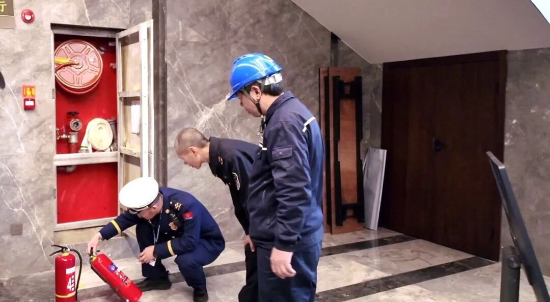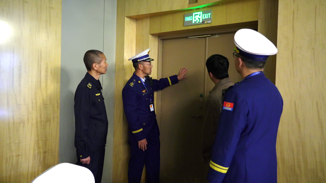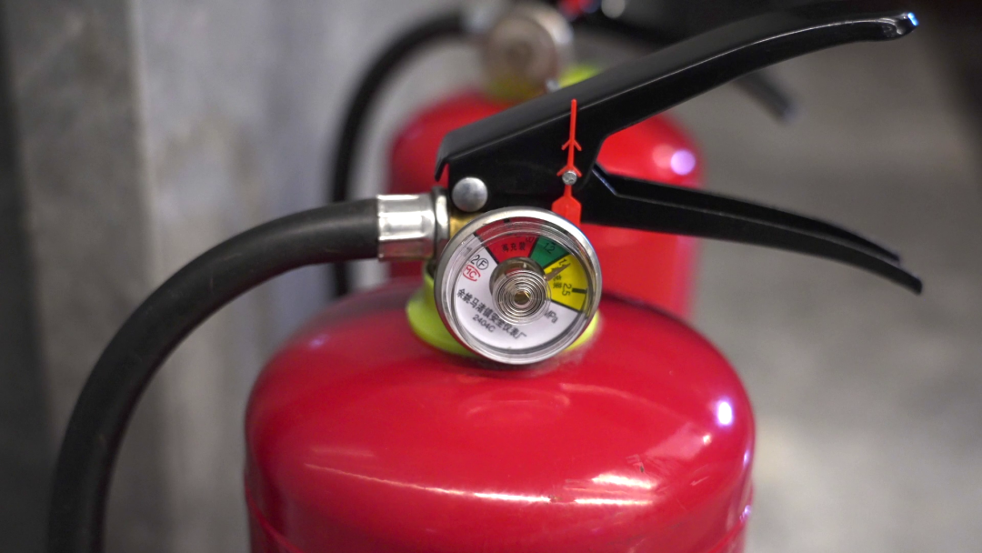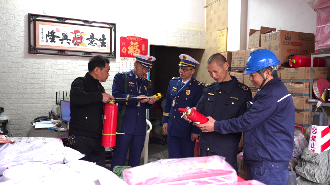 随后,检查组随机抽查了部分公共场所的消防门、灭火器等设施,在一家店内发现两具灭火器压力指针在黄色区域,属于不合格产品。