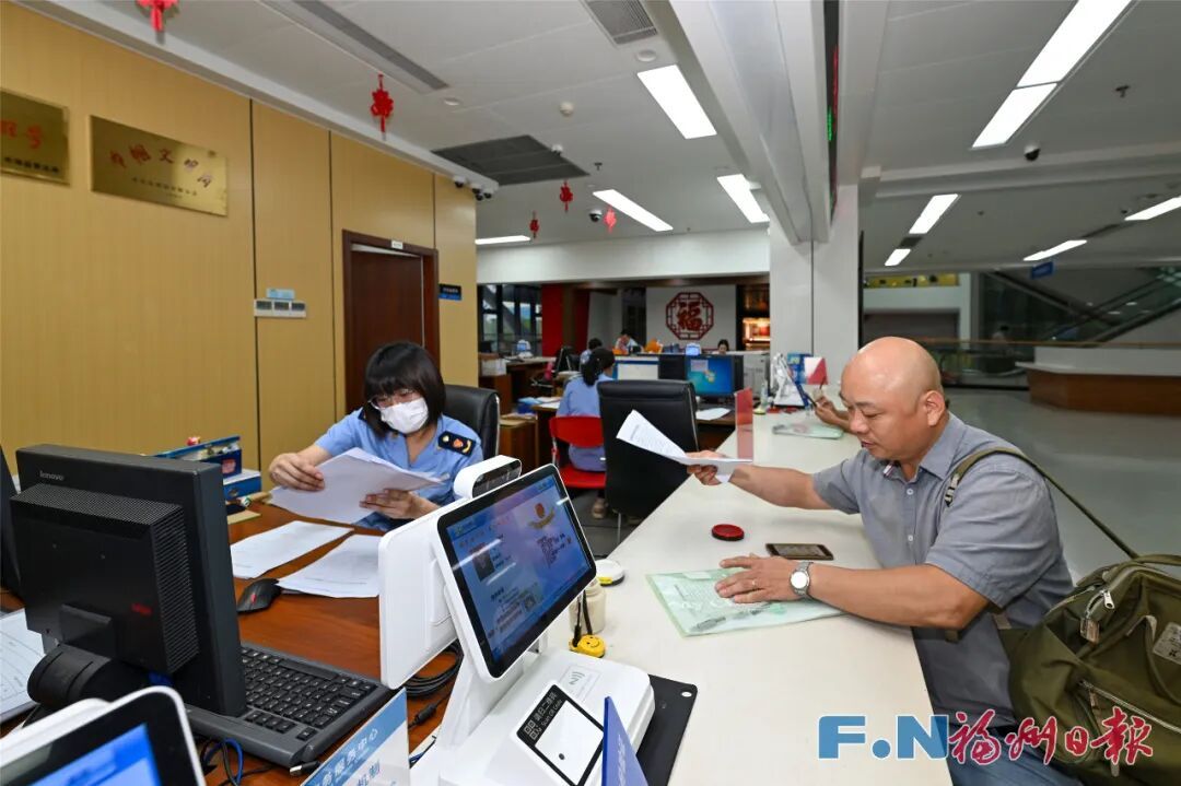 福州市政务服务中心高效办成一件事窗口。池远 摄 “过去群众围着部门转,现在是数据围着群众转。”福州市行政服务中心管委会审批处工作人员张泽雅说。近年来,福州创新推出“高效办成一件事1+N”,支持企业与群众将主事项与多个关联事项灵活组合,实现“一次申请、一窗受理、并联审批、集成办结”。目前,福州已推出50组“一件事”服务场景,材料精简率达68.1%,审批时限压减63.9%。