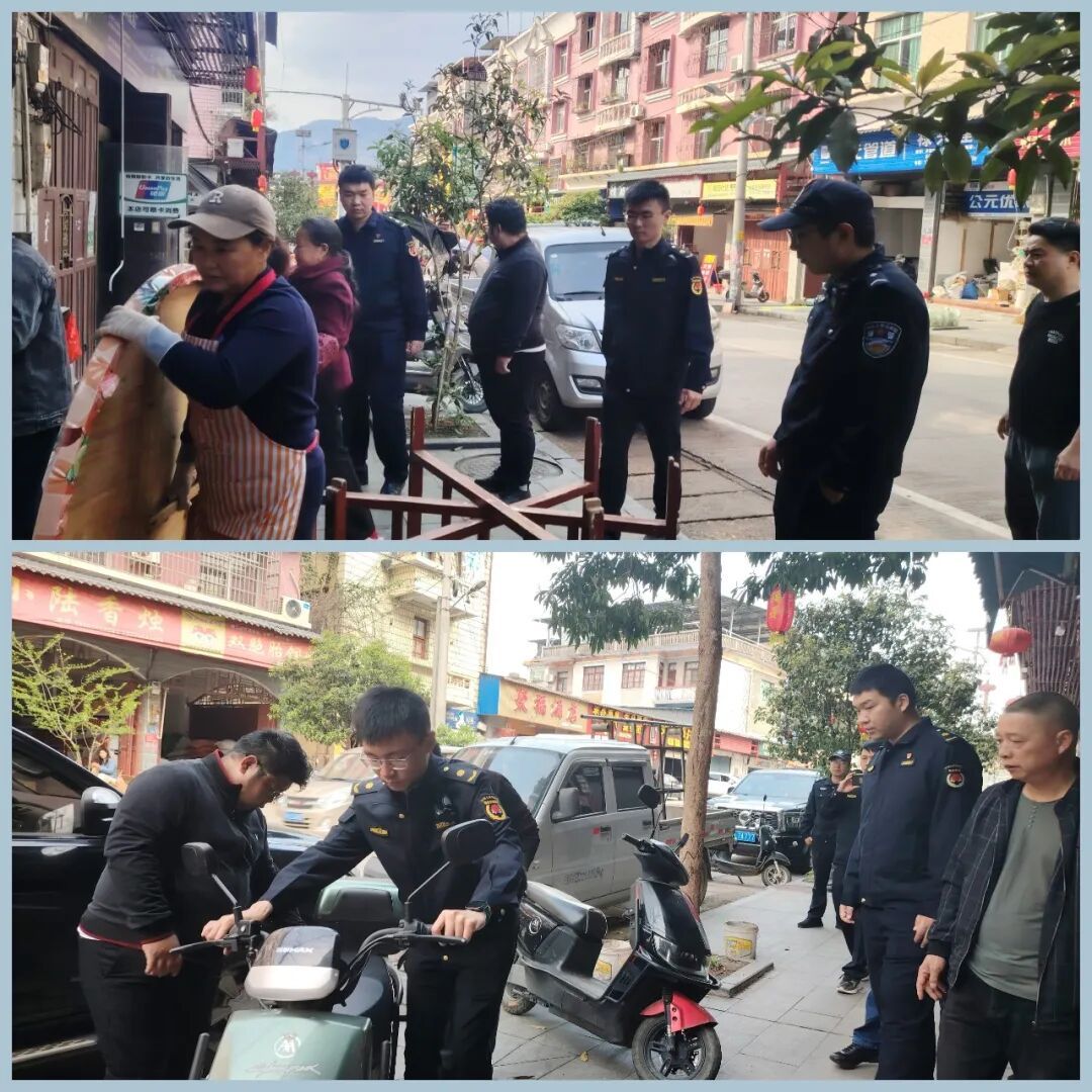 该乡组织综合执法力量在集镇开展拉网式排查整治,整治店外经营,拆除违章搭建,清理私拉乱挂,严格落实“门前三包”制度,合理规划经营区域与停车点位。
