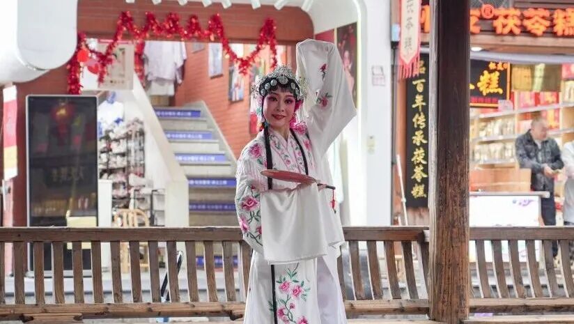 “风雨连廊”内,闽剧与建州唱曲子同声相应,双城戏曲同台共鸣。