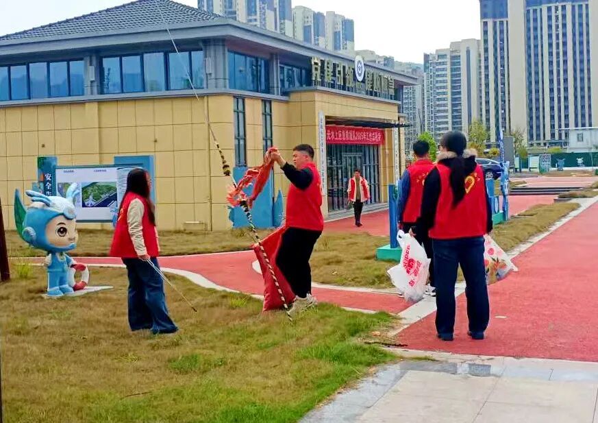活动现场,志愿者们身着统一的红色志愿马甲,手持垃圾夹、垃圾袋等工具,沿高铁西站周边道路、绿化带、文化广场等区域展开“拉网式”清理。经过志愿者们的清理,地面恢复了干净整洁,环境面貌焕然一新。志愿者们用实际行动传递着 “爱护环境、人人有责” 的文明理念。