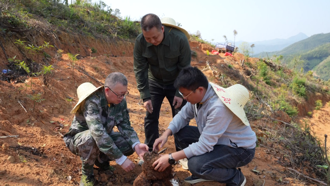 与以往利用松树采伐后留下的树兜“见缝插针”式种植不同,眼前的这片茯苓基地采用的是段木种植模式。在科特派的带领下,林农将松林改造提升行动中采伐下来的松树树干锯成段木,整齐排列埋入土中,再接种菌种。这种模式不仅实现了松林改造剩余物的集中利用,使其变成了培育中药材茯苓的“黄金培养基”,更让原本零散、低效的林下利用方式走向规模化、集约化。