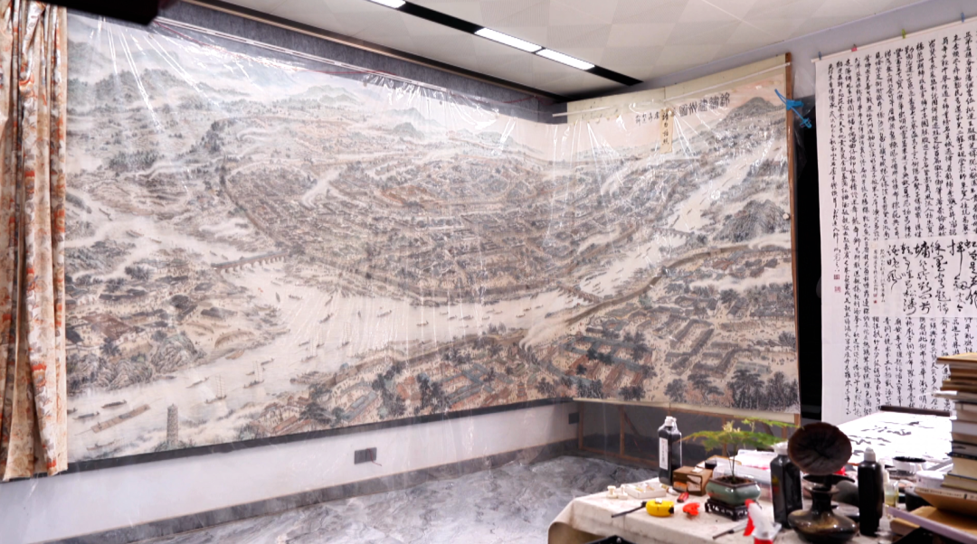 一笔一墨,皆承文脉。本土书画家卢亨穆耗时近四年,为千年建州创作的小写意国画《锦绣建州》主体即将完工。建州千年的市井烟火在笔墨流转间,“投影”于画布之上,为这座古城留下了一部可观的“方志”。